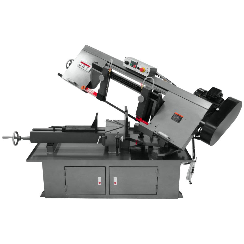 Jet dual mitering horizontal bandsaws unique design head dual miters both left and right for quick angle cuts.