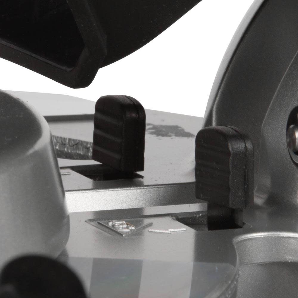 Built-in laser clearly indicates line-of-cut whether blade is turning or not; on-off switch and micro-adjustments for precise “left-of-blade” or “right-of-blade” cutting