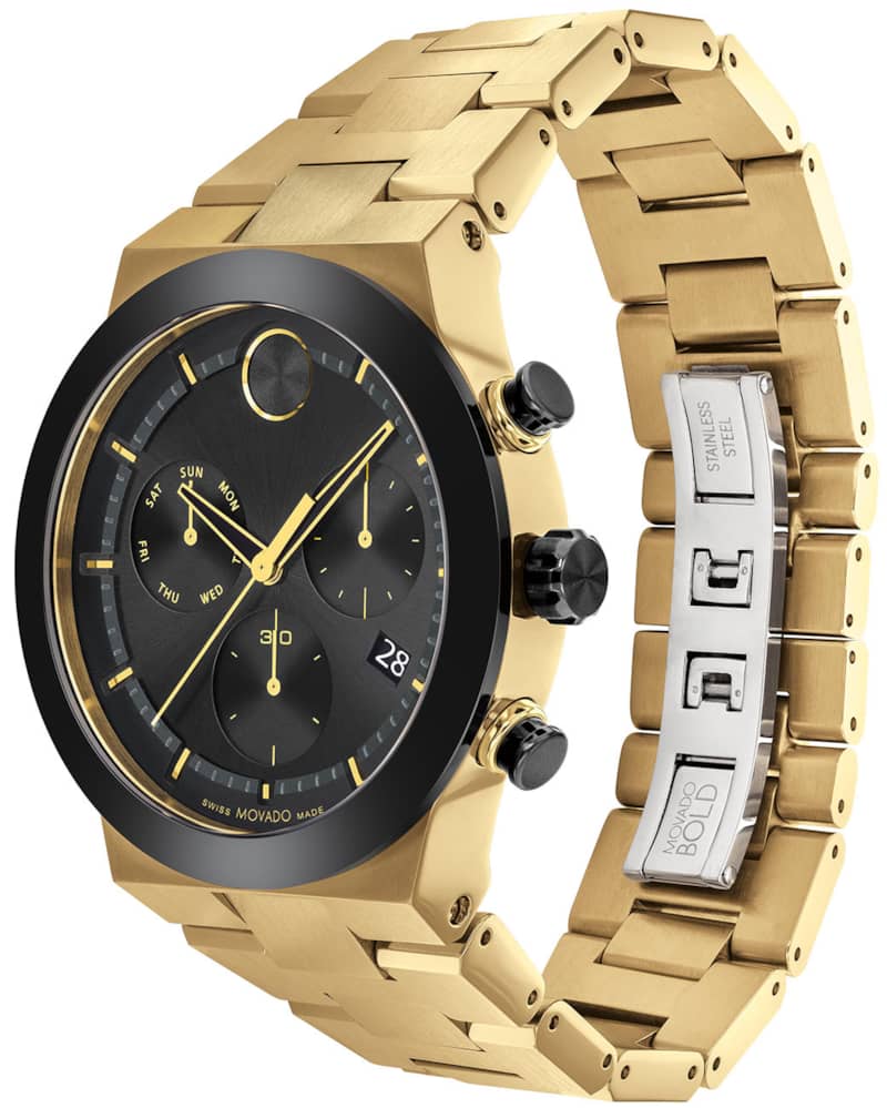 Movado BOLD Fusion Black Dial Pale Yellow Gold IP Bracelet Watch, 44mm