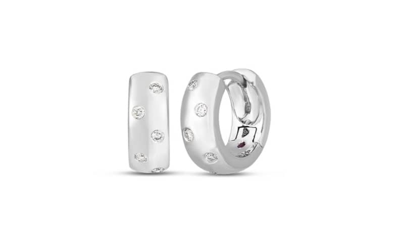 Roberto Coin 001812AWERX0 Classic Diamond Huggie Hoop Earrings In 18K White Gold CLASSIC DIAMOND Features
