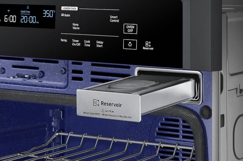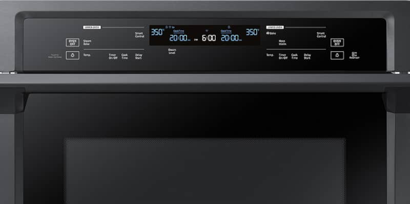 Samsung NV51K6650DG 30″ Double Wall Oven With Steam Cook In Fingerprint Resistant Black Stainless SteelThis smart double wall oven has an easy-fill tray lets you bake, broil, and roast with precise moisture, while two powerful convection fans circulate heat for even cooking. Features