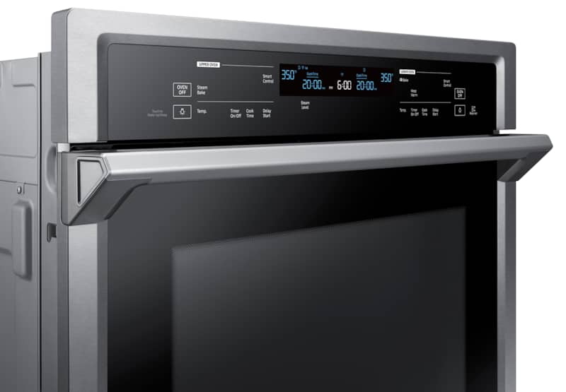 Samsung NV51K6650DS 30″ Double Wall Oven With Steam Cook In Stainless SteelThis smart double wall oven has an easy-fill tray lets you bake, broil, and roast with precise moisture, while two powerful convection fans circulate heat for even cooking. Features