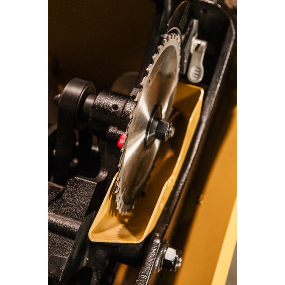 The award winning PM2000 table saw sets a new standard for innovation with an array of patented features and massive body design. The cast iron tables are oversized, and the newly designed arbor lock lever is accessible from above the table top to eliminate the need for dual arbor wrenches. The quick-release riving knife design helps reduce the chance of kickback. The blade tilt scale features an integrated digital read out as well as adjustable angle indicators for repetitive bevel cuts. The newly designed integrated retractable hydraulic caster system mobilizes your table saw much higher than the previous model to assist when moving over thresholds. A wide stance, heavy-duty box trunnion and concave teeth on the trunnion gears promote easier raising and tilting of saw blade. Poly-V drive belt system results in quieter, more efficient power transfer from the motor to the arbor with virtually no vibration and less heat build-up. Improved built-in dust collection port with convenient access to the inside of the saw cabinet for simple clean-up. The saw has a proprietary safety switch with magnetic interlock and the stop button can be knee activated.