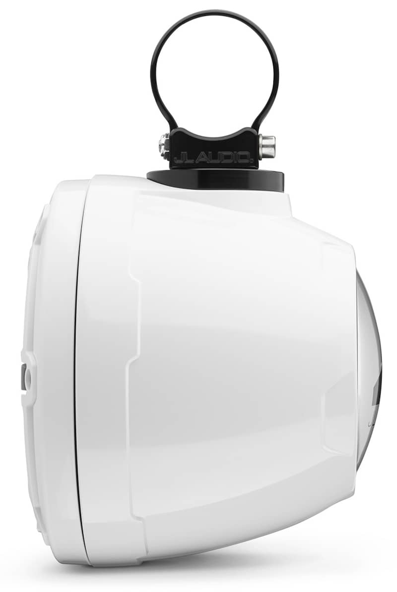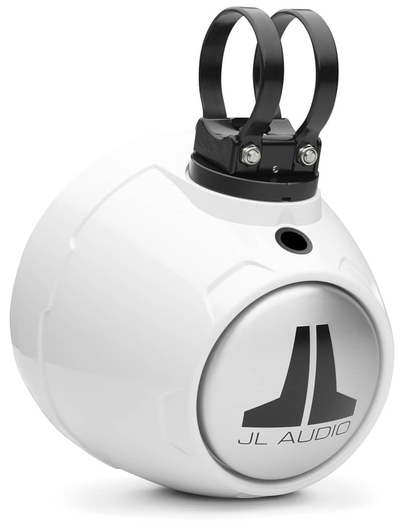 JL Audio 93412 M6 Series 6.5″ Marine Enclosed Coaxial Speaker System With Transflective LED Lighting (Pair)M6 6.5-inch Marine Enclosed Coaxial Speaker System with Transflective™ LED Lighting (75 W, 4 Ω) – Gloss White Enclosure, Gloss White Trim Ring, Gloss White Sport Grille Ideal for powersports, marine and off-road vehicle applications, these enclosed speaker systems include our maximum-performance, M6 6.5-inch marine coaxial speakers with silk dome tweeters housed in rugged, injection-molded enclosures to deliver clean, loud audio. A rotating clamp receiver is included with each VEX™ pod to mate with an appropriate fixture (sold separately) for mounting to a flat surface, roll-cage or tower structure, allowing precise aiming for optimum sound. Pipe mounting fixtures (sold separately) are available in a variety of sizes to fit a wide range of tube diameters. The patent-pending Transflective™ RGB LED technology emits a smooth lighting effect through the woofer cone, with a choice of several lighting colors. Add an optional RGB controller to create thousands of color variations. Professional installation is strongly recommended. The enclosures feature a decorative, aluminum logo cap on the end opposite the speaker, which can be oriented to match any custom mounting application. For convenience, ten feet of our 6-conductor, multifunction cable is included with each VEX™ pod for making speaker and illumination connections. Although VEX™ pods can be used with as little as 25 W per channel, we recommend powering these systems with an amplifier capable of 75-150 W of continuous power per channel. For best results, use with a subwoofer. Like all JL Audio marine speakers, this system is weatherproof and built to deliver years of listening enjoyment. Sold as a pair. Specifications