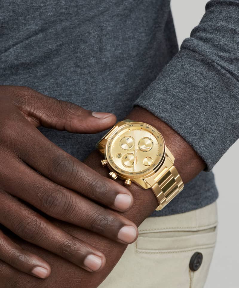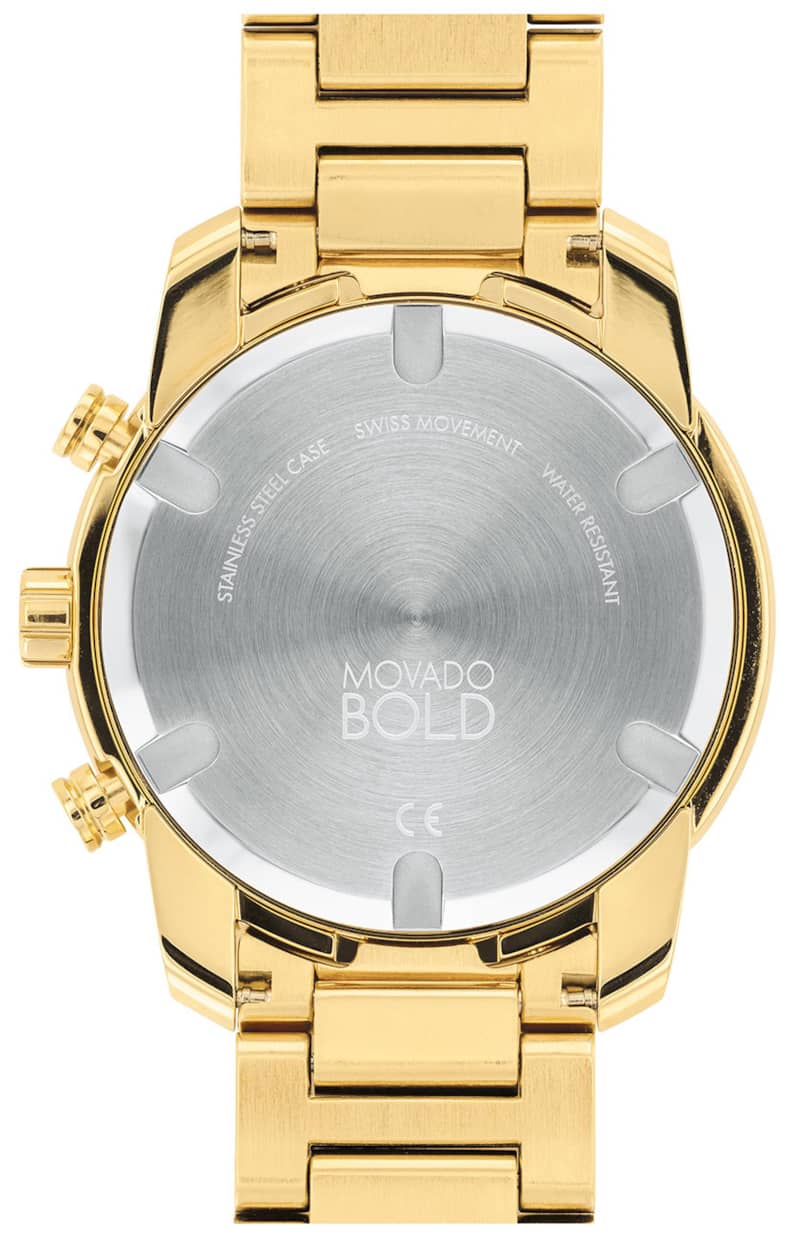 Movado BOLD Verso Chronograph Yellow Gold-Tone Metallic Dial & Ion-Plated SS Link Bracelet Watch, 44mm