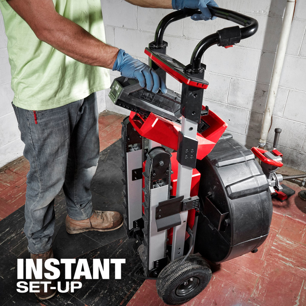 The MILWAUKEE® MX FUEL™ Sewer Drum Machine simplifies sewer calls by providing the power to clear roots at 200 ft out, containing the mess with a fully closed drum, and cordless power for instant setup. The POWERSTATE™ Brushless Motor delivers the power to clear roots up to 200 ft out in 3″-8” sewer lateral lines. This provides full power at the maximum capacity of the machine. The drum is fully enclosed providing the best protection against the mess. The sewer machine features CABLE-DRIVE™ Automatic Feed & Retract, which reduces fatigue by eliminating the need to pull back the cable from the pipe. The RAPID STOP™ button quickly releases the CABLE DRIVE™ bearings to prevent the cable from binding. REDLINK PLUS™ intelligence improves control with an integrated drum brake, slowing the power sewer machine faster than competitor drums. The MX FUEL™ REDLITHIUM™ battery pack powers through multiple jobs on a single charge, delivering cordless mobility, safety, and power supply to the drain cleaning industry. It is compatible with all Milwaukee MX FUEL™ REDLITHIUM™ batteries delivering the hardest working and most reliable power for equipment. The drum sewer machine is ONE-KEY™ Compatible. Track, manage and secure equipment from mobile devices or computers using the industry’s largest Bluetooth® community tracking network. If the sewer machine is lost or stolen, prevent tampering with remote lockout capability.