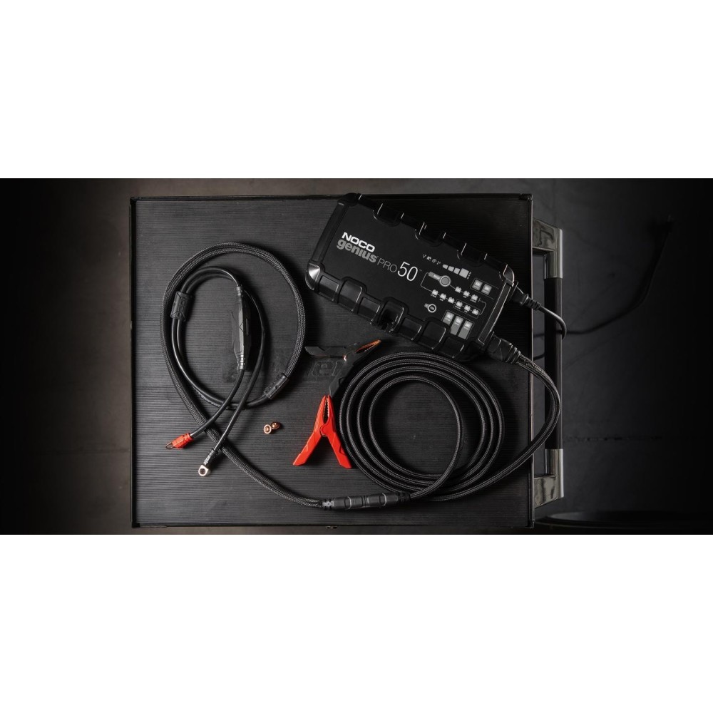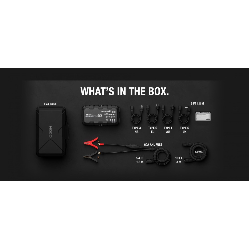 Introducing the all-new Genius Pro, a 6V, 12V, and 24V fully-automatic professional smart charger, maintainer, power supply, and battery-desulfator with temperature compensation rated at 50A for all types of automotive, marine, and deep-cycle batteries. The Genius Pro50 features universal AC input range of 100-240VAC and comes with several AC plugs: Type A-NA (North America) plug, Type C-EU plug, Type I – AU plug, and a Type G – UK plug. The charger features a new integrated thermal sensor offering thermal compensation down to -4 Deg F and up to 122 Deg F. With the chargers advanced diagnostics, it makes it completely automatic for year-round charging and no need to worry about undercharging or overcharging batteries. With a high efficiency design the NOCO Genius Pro 50 is great for batteries 6V and 12V batteries 40Ah to 2000Ah and 24V up to 1000Ah.